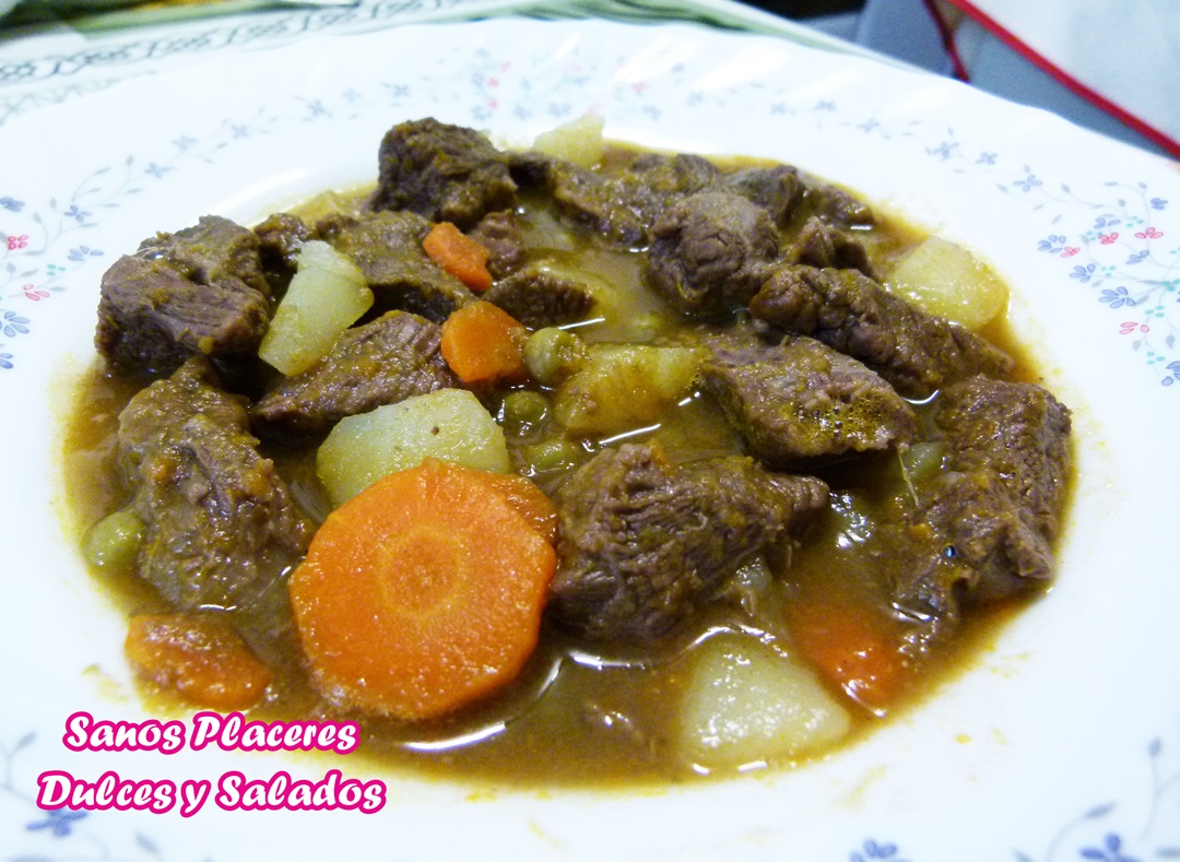 Ahora, lo echamos todo en una cazuela grande, añadimos una cucharada sopera de aceite de oliva y echamos la carne. Vamos moviendo hasta que la carne comience a soltar jugo. Entonces, llenamos de agua sin llegar a cubrir, tapamos y dejamos que vaya cociendo (unos 40 minutos).