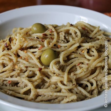 Mientras tanto, ponemos a cocinar la pasta según las instrucciones del fabricante hasta que estén al dente (eso es muy importante). Se drena la pasta y de inmediato se adereza.
