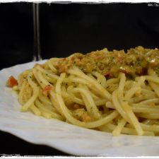 El pesto alla pantesca es originario de la isla de Pantalería (Pantellería en italiano), famoso por sus alcaparras y olivas. La textura de la salsa recuerda al pesto alla genovese, pero un poco más áspera. No requiere cocción.