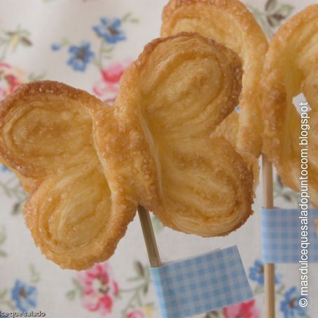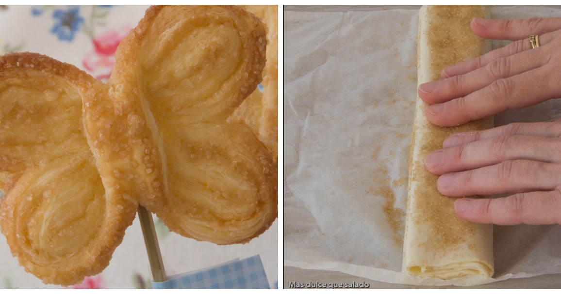 Elaboración paso a paso, con fotografías, de mariposas elaboradas con una hojaldre y azúcar moreno