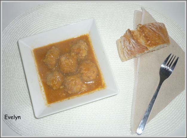 Albóndigas de jamón serrano y calabacín en salsa de tomate