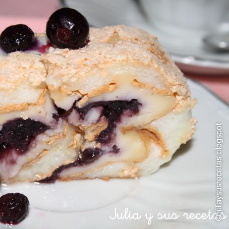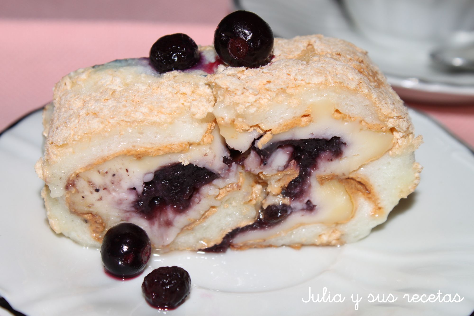 Lo enrollamos ayudándonos del papel donde lo hemos horneado con mucho cuidado para que el merengue no se rompa.