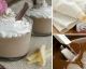 En un bol ponemos las yemas con el azúcar y la mantequilla derretida a temperatura ambiente y batimos bien hasta que doble su tamaño.