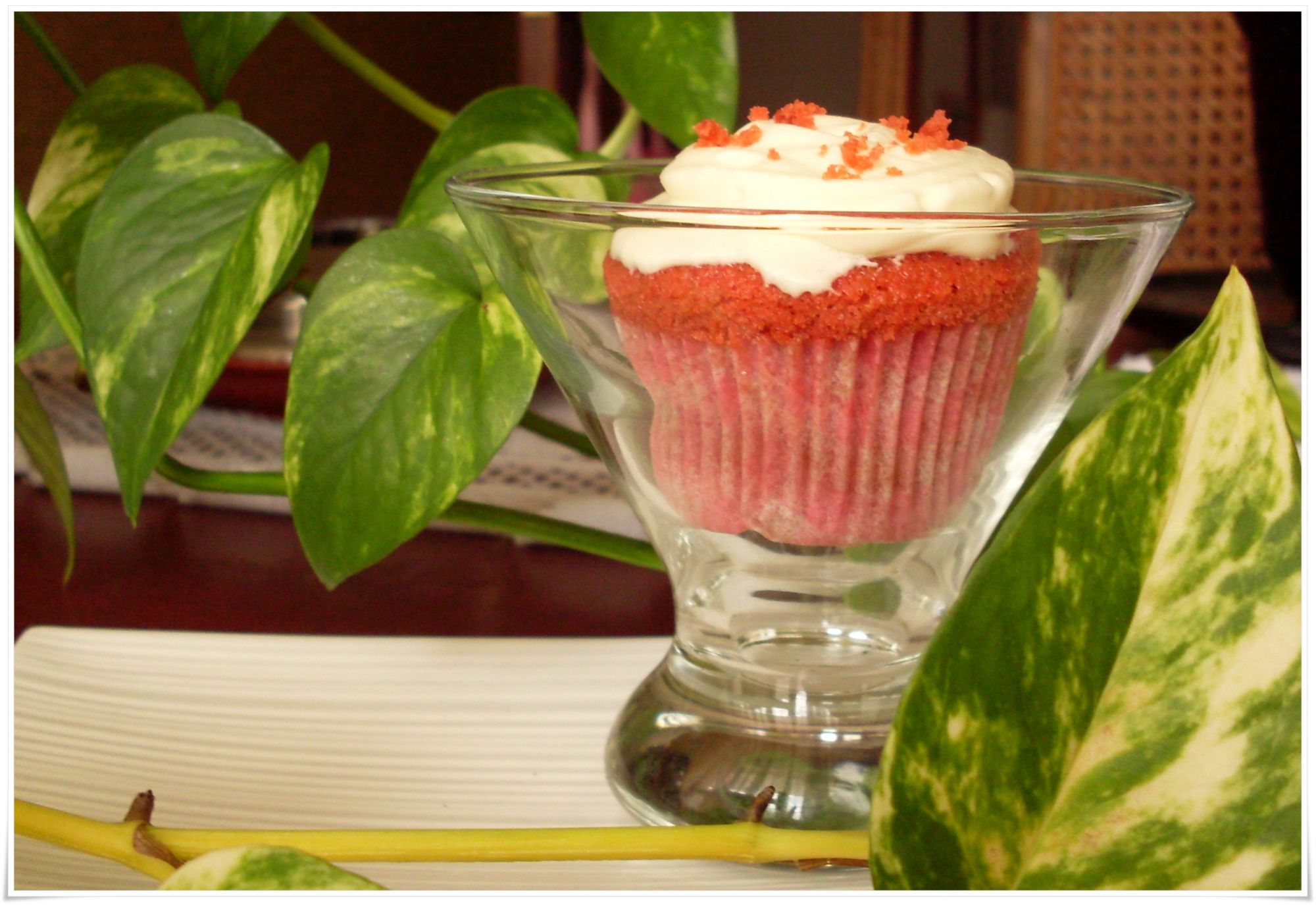 • 60ml de aceite de oliva suave, 160gr de azúcar blanco, 1 huevo, 1 cucharadita de cacao sin azúcar, colorante rojo, extracto de vainilla, 125gr de leche, 1 cucharadita de zumo de limón, 150gr de harina, 1/2 cucharadita de bicarbonato de soda y 1 cucharadita de vinagre blanco.