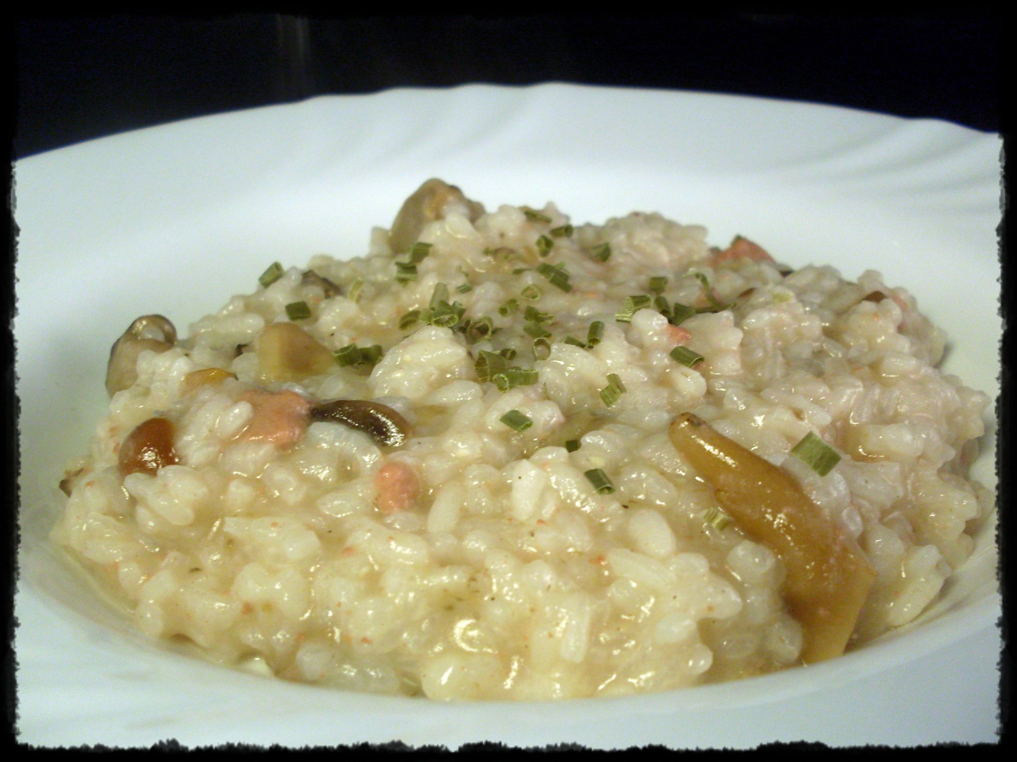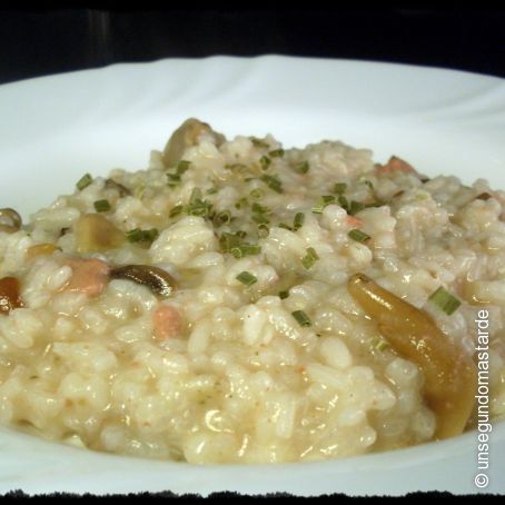 - 2 dientes de ajo, 30gr de aceite de oliva, 300gr de setas variadas, 320gr de arroz para risotto, 50gr de vino blanco seco, 800gr de caldo de carne o verduras hirviendo y 100gr de foie.