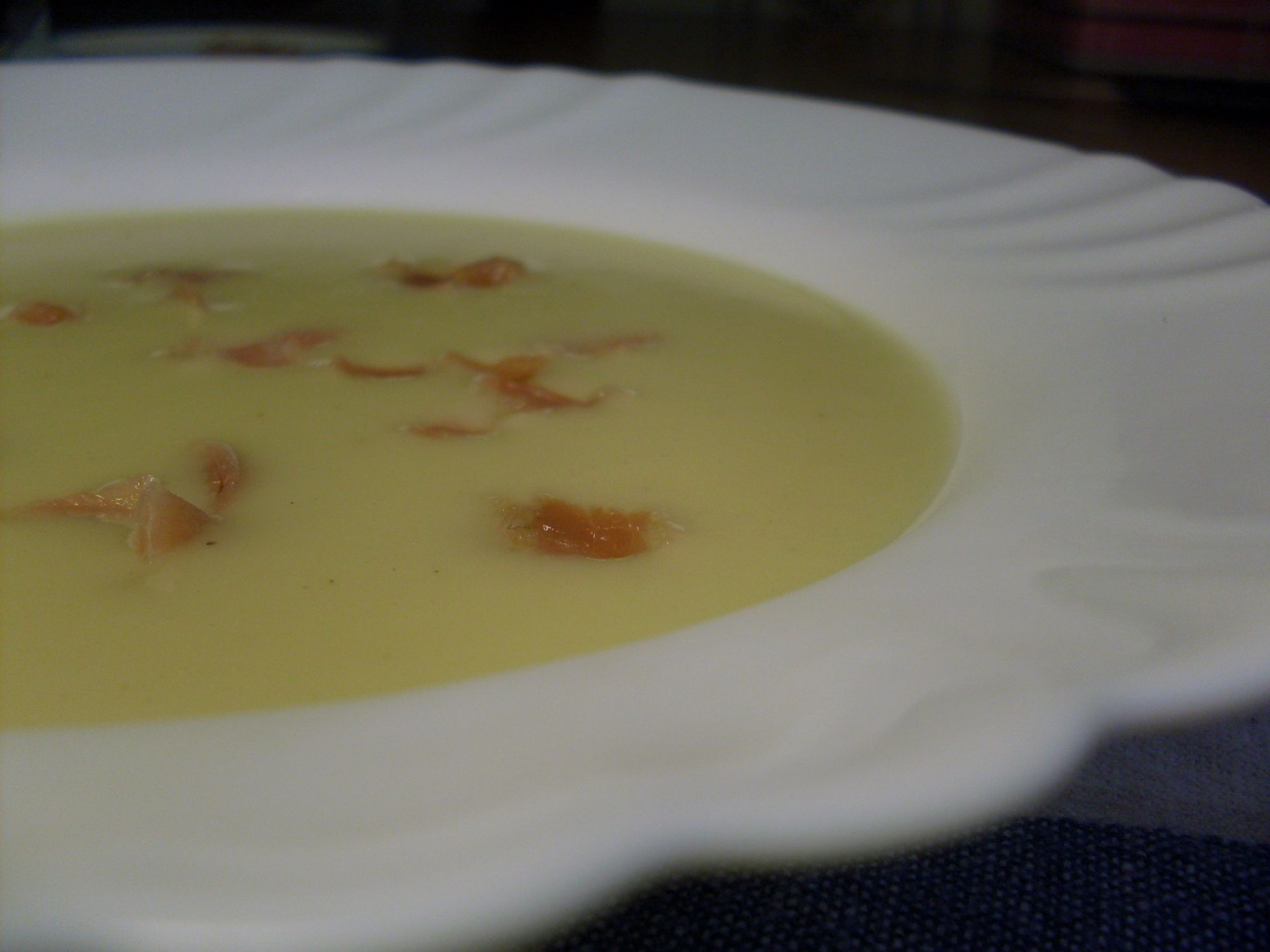 Servimos la crema acompañada de los picatostes o el jamón.