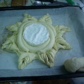 Le damos forma de sol y finalmente una vez listo el pan con el queso incluido, lo dejamos levar hasta que doble su volumen.