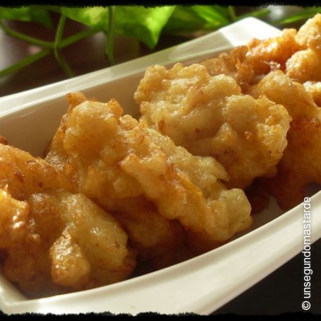 Freimos cucharadas de masa en abundante aceite caliente y vamos sacando sobre papel absorvente. Servimos acompañado de mayonesa, ali-oli, salsa brava o lo que mas nos guste.