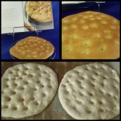 Después del segundo levado le hacemos los agujeros tipicos de la torta, pinchandolas con el dedo y las untamos con abundante aceite.