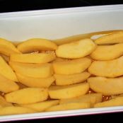 1-Hacer el caramelo sin que tome mucho color, pues después irá al horno. echar en el fondo del molde, pelar y cortar las manzanas, poner encima del caramelo. Dejar enfriar.