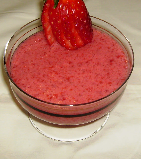 Ahora incorporamos la mezcla de fresas y yogurt , seguimos batiendo un poco mas. Ponemos en copas y dejamos en el frigorífico un a hora antes de servir.