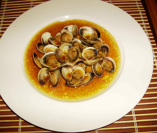 1-Meter las almejas un rato con agua y sal para que suelten la arena.