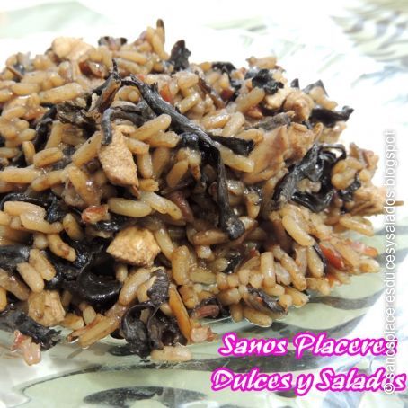 Arroz salvaje con setas deshidratadas y pollo (sin gluten, lactosa, ni huevo)