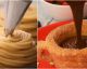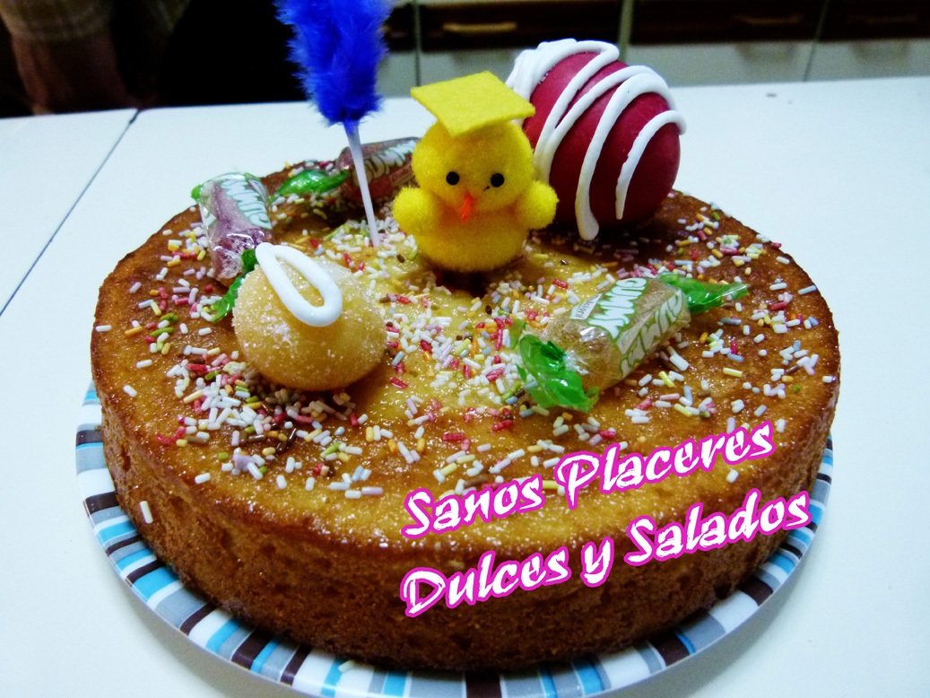 Ponemos el horno a precalentar a 180ºC. Distribuimos la masa en un molde de tamaño medio (24cm) o en dos de tamaño pequeño. Y la llevamos al horno durante 35-40 minutos. Como cada horno tiene su punto, es conveniente cerciorarse de que el bizcocho ya está hecho, metiendo un palillo en el centro y comprobando que sale totalmente seco. Una vez comprobado esto, lo sacamos del horno y sin desmoldarlo, lo dejamos enfriar. Cuando se enfríe, lo desmoldamos y lo ponemos encima de una rejilla, dispuesto a ser decorado.