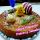 Con esta mezcla en caliente, pintamos el bizcocho por la zona superior solamente (sin empaparlo en exceso) y esparcimos en forma de lluvia los fideos de colores, consiguiendo que estos se queden pegados.