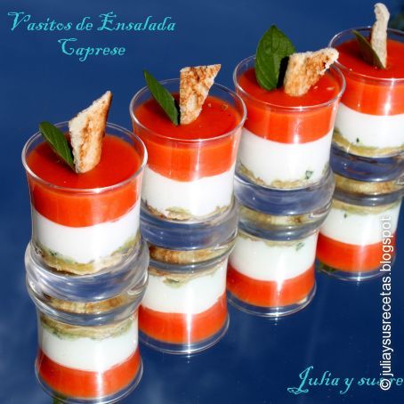 Los metemos en el frigorífico para que la gelatina tome cuerpo 2-3 horas. Los adornamos con un trozo de pan tostado y una hoja de albahaca.