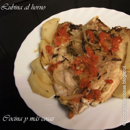 Colocamos la bandeja en el horno y dejamos cocer a 220º de cuarenta a cuarenta y cinco minutos, depende del horno.