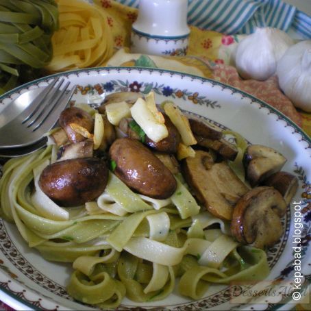 Cuando esté cocida en su punto (al dente), escurrirla y verterla en la sartén con las setas.Remover todo el conjunto y añadir el perejil picado.