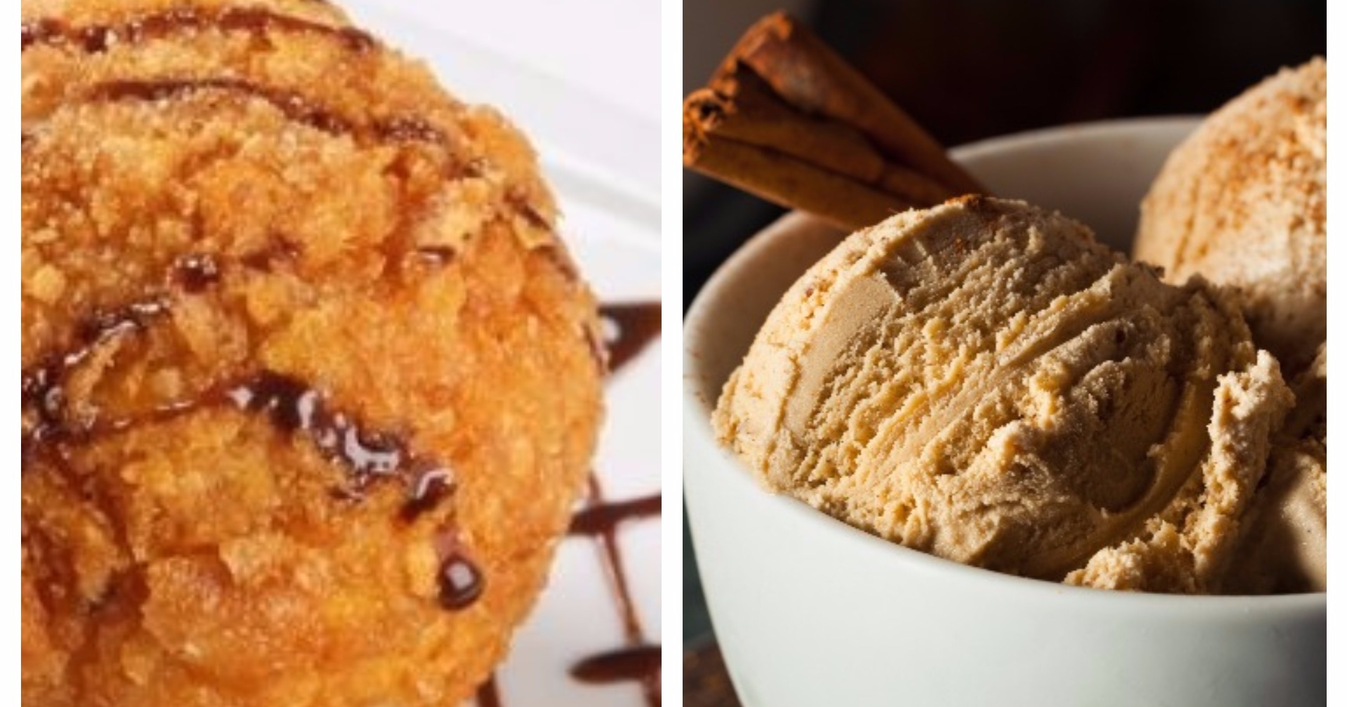 Mezcle todos los ingredientes y luego recubra bolas de helado con esta mezcla. Fría en abundante aceite a 170°C hasta que se dore. Seque en papel absorbente y sirva de inmediato.