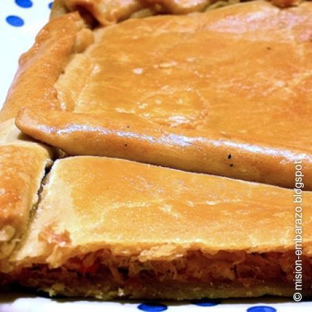 9°- Se pone encima la otra mitad de la masa cubriendo todo y prenso los bordes para cerrarla
