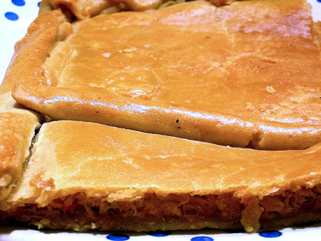 8°- Se rellena con el pimiento y la cebolla pochada + el bonito + los pimientos rojos