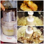 2.- Pelamos y cocemos las patatas; las escurrimos y las trituramos en el robot de cocina. Les añadimos el ajo y el bacalao y el aceite poco a poco para que se integre bien. Debe quedar muy cremoso. Salpimentamos y reservamos.