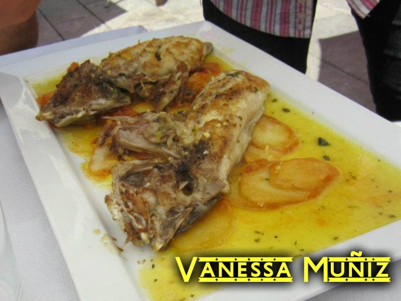 Se prepara un caldo con la cabeza de la chopa y se reserva. La chopa se corta en rodajas que se enharinan ligeramente por un lado. Se fríen en una cazuela, se añade la cebolla picada y el ajo y se deja hacer bien.