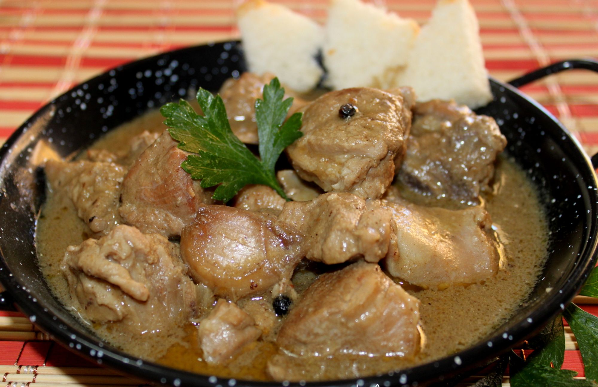 Se sirve con un buen pan para mojar y un buen vino para acompañar.