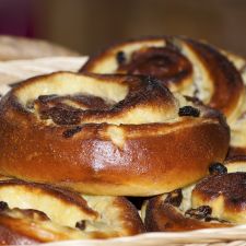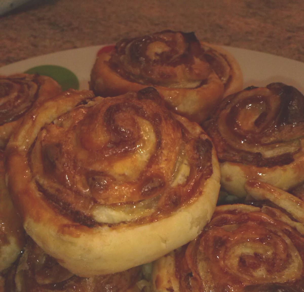 Ahora doblamos la lámina hasta formar un churro y cortamos láminas de 1 o 2 cm, las colocamos en una bandeja a la que habremos puesto papel de horno. Las untamos con una yema de huevo y azúcar y las colocamos en el horno a 180º durante 40 minutos.