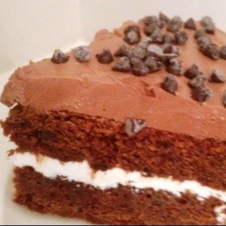 Derrito el chocolate. Cubro la tarta y lo espolvoreas con virutas de chocolate o pepitas.