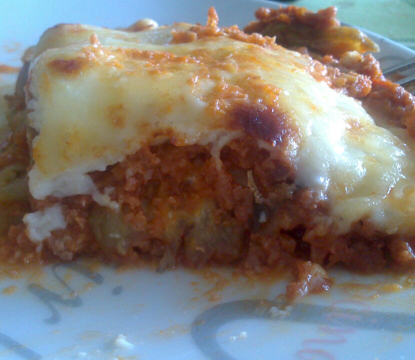 Se colocan en una fuente resistente al horno capas sucesivas se berenjena y de salsa boloñesa. Finalmente se vierte encima una bechamel líquida.