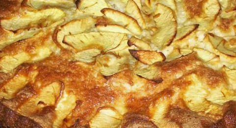 Batir todos los ingredientes, echar en molde redondo de 25 cm (más o menos) y decorar con manzana.