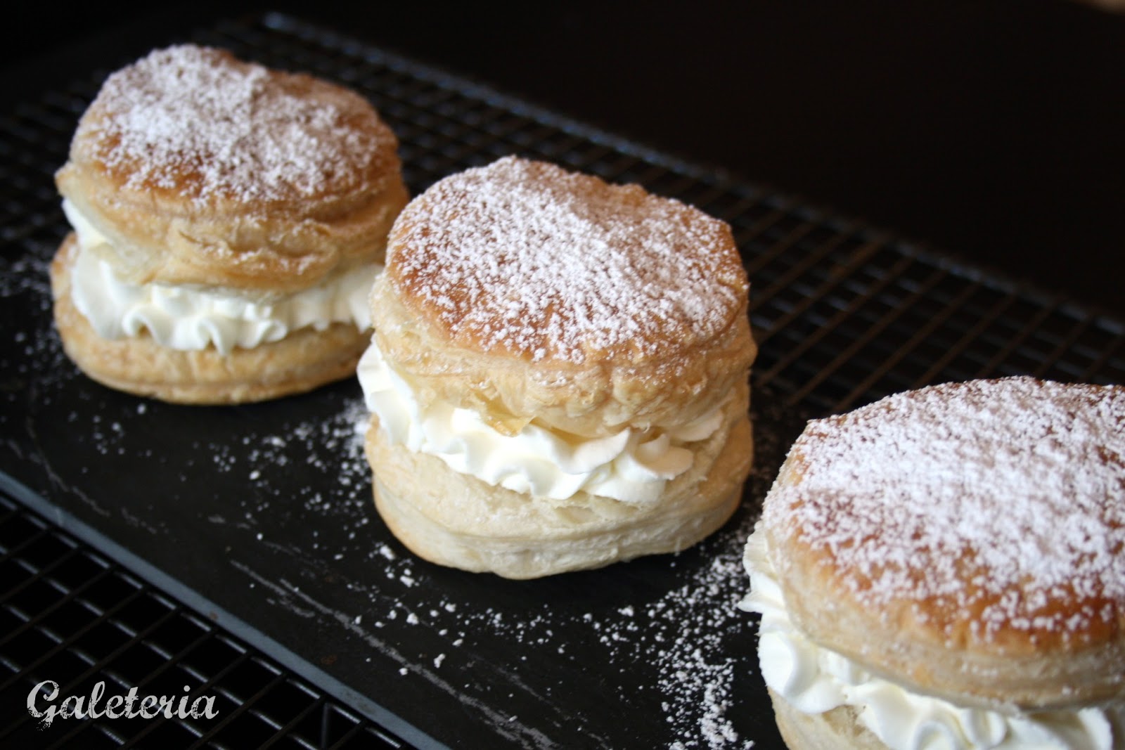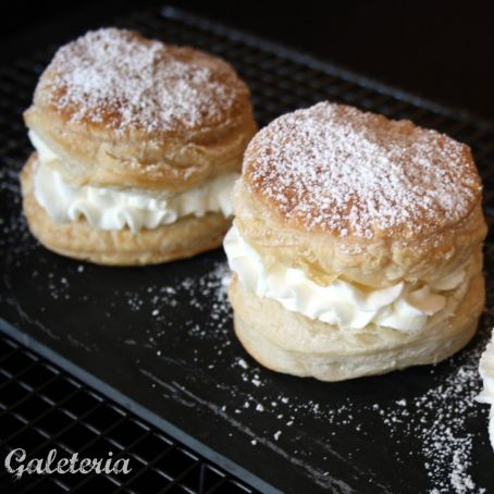 Abrir el hojaldre y con una manga pastelera rellenar con la nata montada