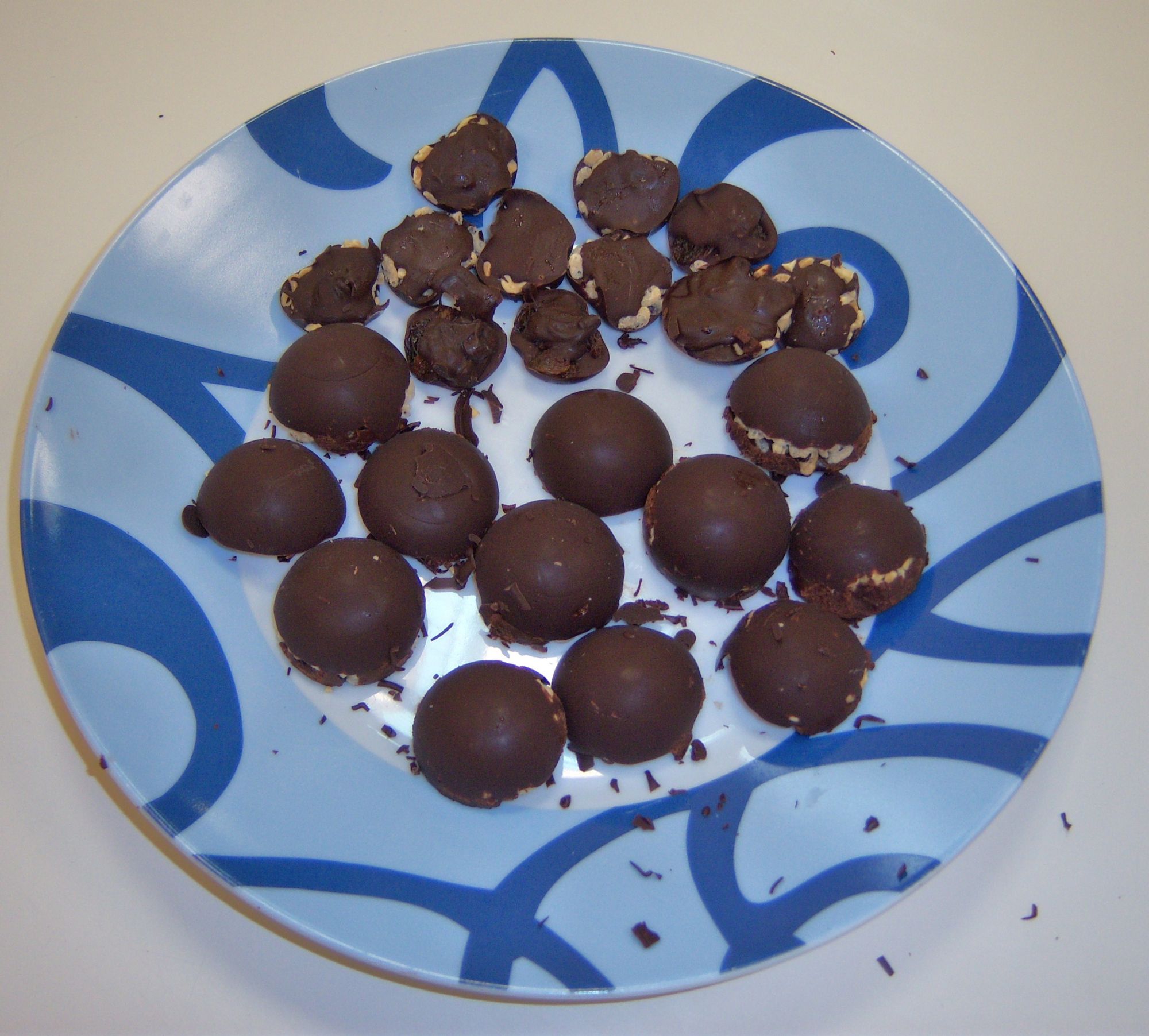 * Se podría utilizar la mitad de chocolate blanco rellenando la primera mitad y así obtener bombones rellenos de 2 colores.
