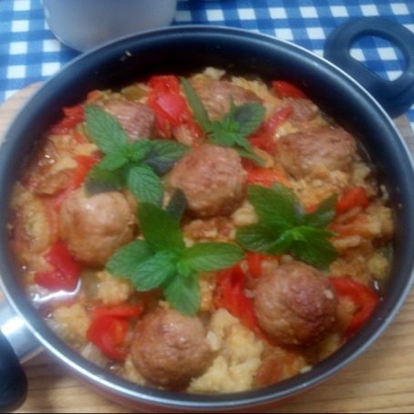 Vigilar las albóndigas para que queden doraditas y no se quemen. Se le puede añadir un poco de agua si hace falta, para queden en su punto y no queden muy saladas. Siempre suelo acompañarlas de unas patatas fritas en forma de tacos, pero en esta ocasión va sobre una base de sopa de tomate, que próximamente explicare como realizarla . Buen provecho.
