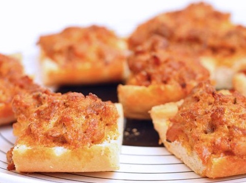 Untamos la mezcla en el pan y horneamos a 180 º durante unos 15 minutos.