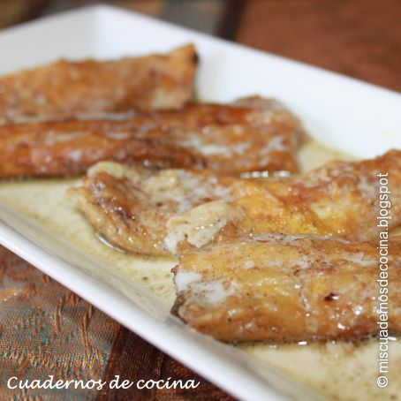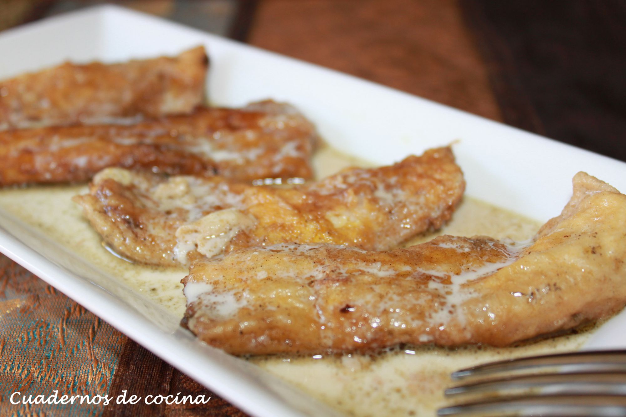 Las vamos pasando a una cazuela y cuando ya estén todas fritas, echamos el ajo en láminas y lo doramos en el mismo aceite donde hemos frito las pencas. Añadimos un buen chorro de leche y lo dejamos cocer un par de minutos. Echamos el caldo resultante en la cazuela y lo dejamos que cueza unos 10 minutos más. Retiramos y servimos.