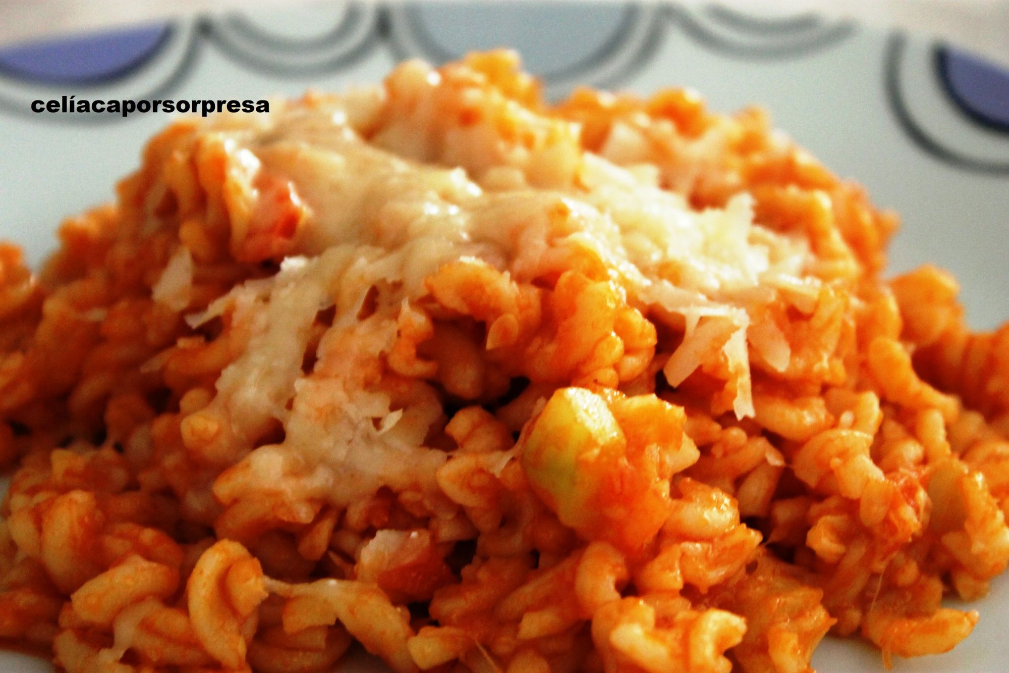 Tener en cuenta que la pasta sin gluten tarda algo más en quedar tierna que la pasta normal de trigo.