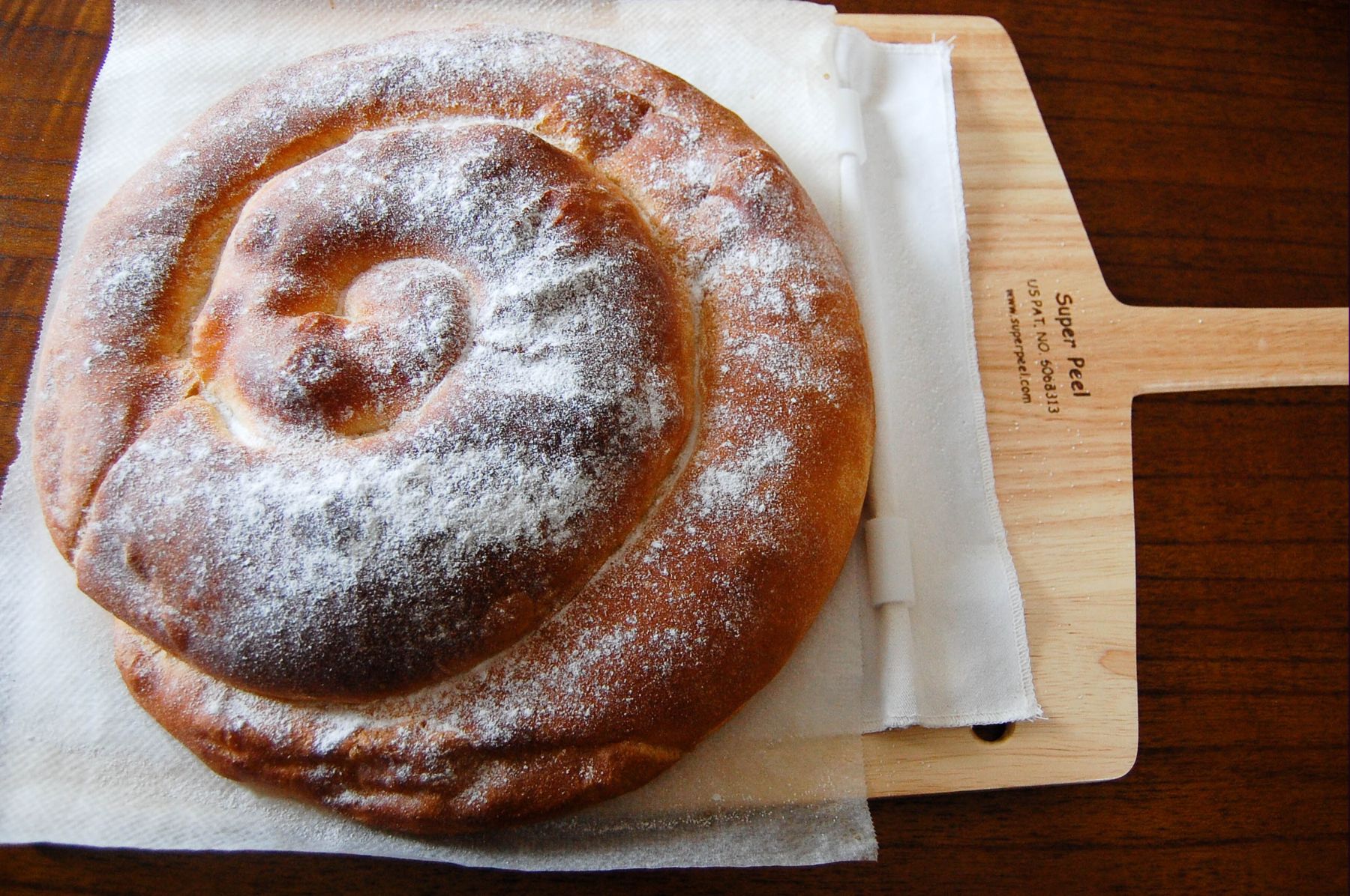 Cuando tengamos la masa, la estiramos hasta que quede muy fina y la untamos con manteca. Enrollamos esta masa y la cortamos en rodajas (unos dos centímetros de ancho). Espolvoreamos la encimera con harina y de nuevo enrollamos los cilindros adoptando la forma ya característica de la ensaimada.