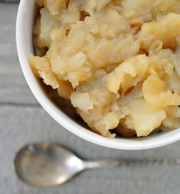 Cocinar a fuego medio bajo durante 20 ó 30 minutos y revolviendo ocasionalmente hasta que las manzanas se puedan aplastar fácilmente con una cuchara.