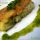 Poner en el vaso de la batidora el perejil, los ajos, sal, pimienta y aceite de oliva suficiente para que lo cubra ( unos 100ml) triturar bien y pincelar los lomos de merluza con esta mezcla, menos por la parte de encima. Guardar un poco de salsa para emplatar.