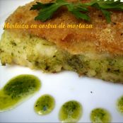 Ponerlos en una bandeja de horno y extender sobre cada uno una cucharadita de mostaza Maille, y encima pan rallado.