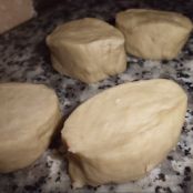 Con el rodillo extender cada bola, hay que hacer una tortita muy fina, algo asi como de un milímetro de espesor. No se necesita enharinar el mármol de trabajo.