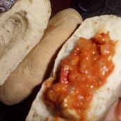 Este pan ya está hueco por dentro y listo para rellenarlo con lo que te apetezca. En este caso lo he rellenado con una carne en salsa de tomate y verduras. Muy bueno.