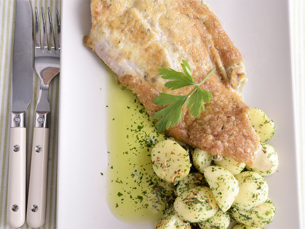 Para preparar la receta de Lenguado con gratinado de anchoas y alcaparras