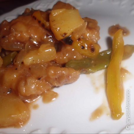 Y probare a hacer la carne con la cebolla y el pimiento, sin rebozarla. Solo por ver como sale.