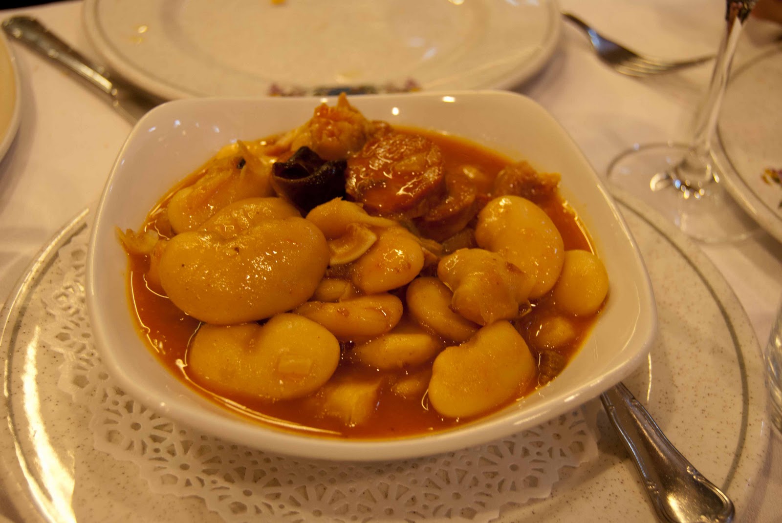 Pasado el tiempo emplatamos disponiendo en un plato los judiones. Añadimos también el chorizo y la morcilla troceados.