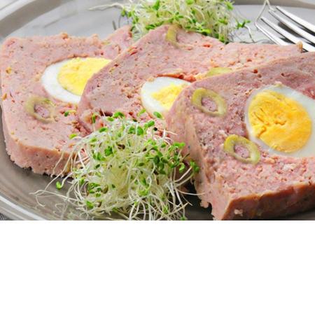 Creamos una capa de la mezcla de carne y encima ponemos los 4 huevos cocidos en hilera y acabamos de rellenar con el resto de la carne.