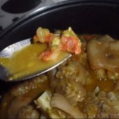 Yo he usado la chef, las he puesto 25 minutos en menú Presión-vapor. Deja que enfríen un rato las patas de cerdo; quítales los huesos y resérvalas. Reserva también el caldo de cocción.