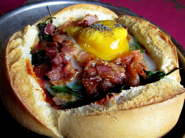 Huevos al nido gratinados